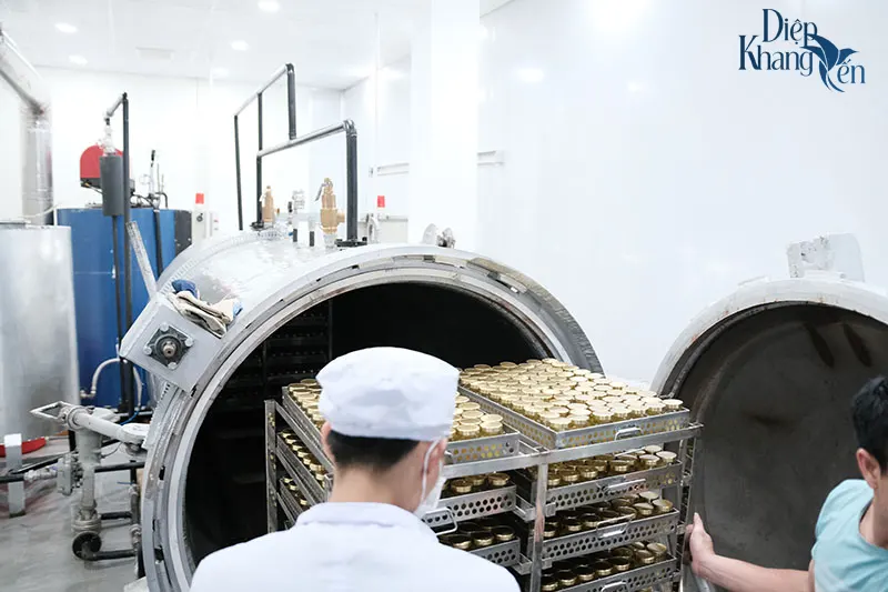 Tổ yến tinh chế được trải qua nhiều công đoạn tạo hình, ép khuôn, sau đó sấy lạnh để đảm bảo dinh dưỡng.